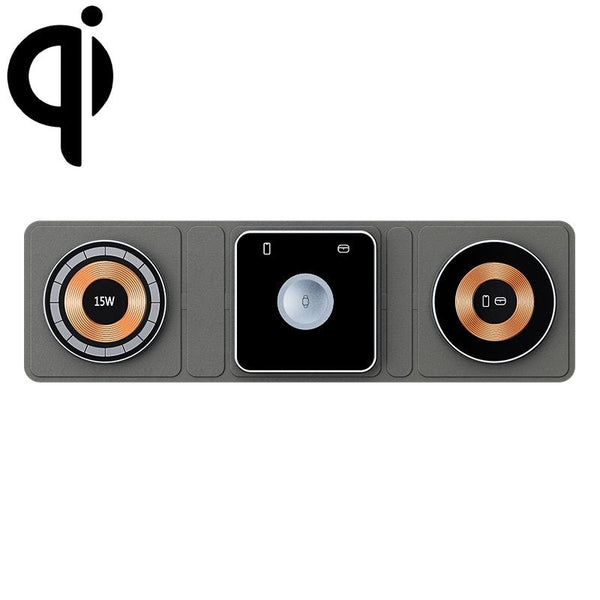 XH-X8 15W 3-in-1 MagSafe Foldable Mini Magnetic Mobile Phone Earphone Watch Wireless Charger(Black)