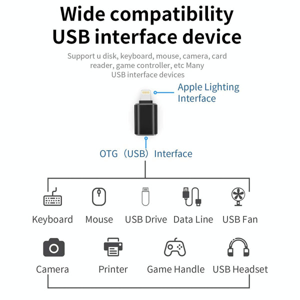 XQ-ZH001 USB Female to 8 Pin Male OTG Adapter(Black)