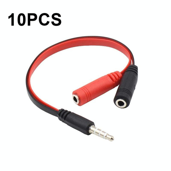 Y-1001 10pcs 20cm 3.5mm Car Audio Computer Headset Microphone 2 In 1 Adapter Cable(Nickel Plated)