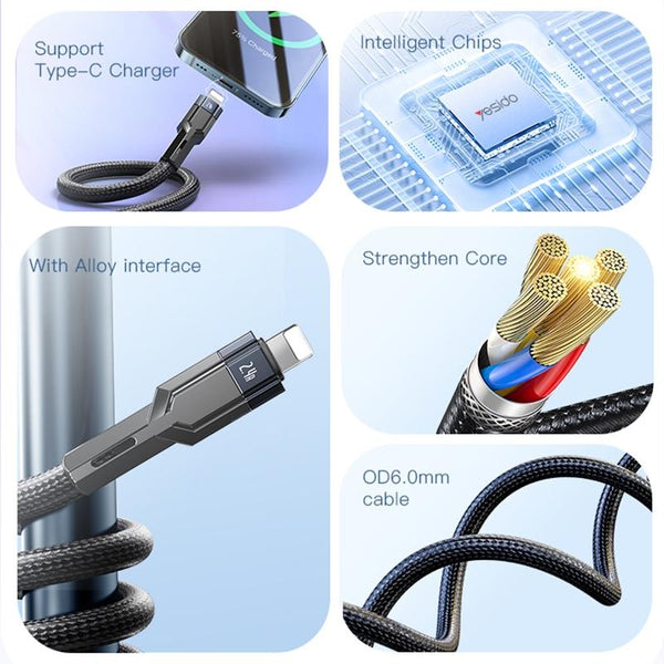 YESIDO CA107 1.2m 2.4A USB-C / Type-C to 8 Pin OD0.6 Charging Data Cable(Black+Blue)
