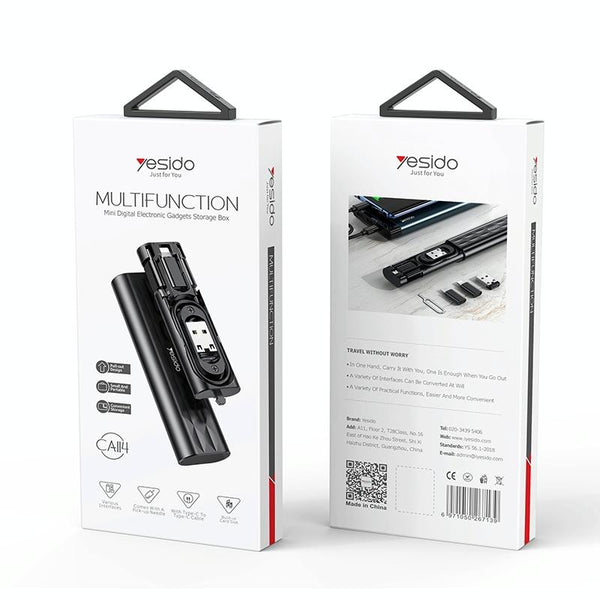 YESIDO CA114 5 in 1 Multifunctional Charging Data Cable Storage Box Suit (Black)