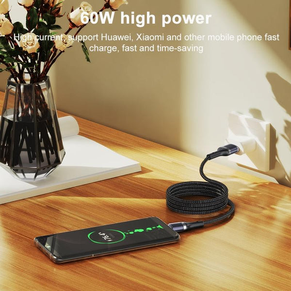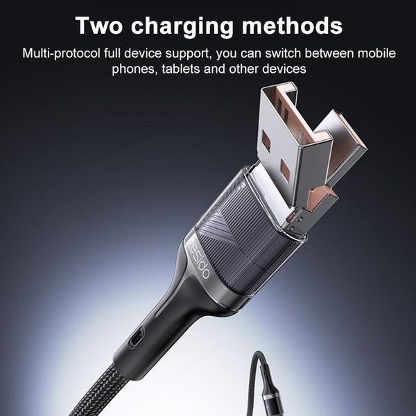 Yesido CA165C 60W USB + USB-C / Type-C to USB-C / Type-C 2 in 1 Fast Charging Data Cable, Length:1.2m(Black)