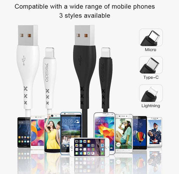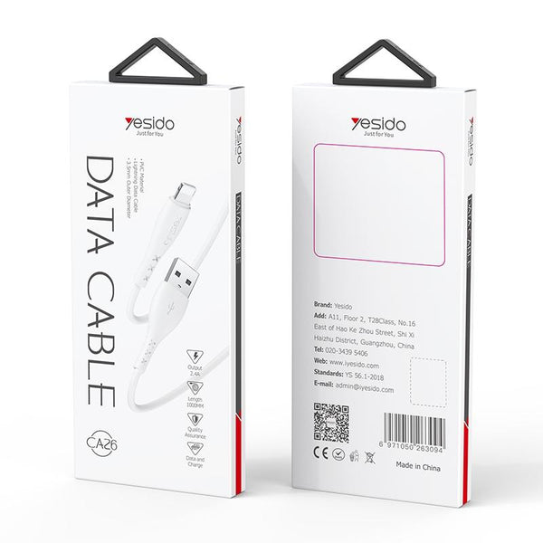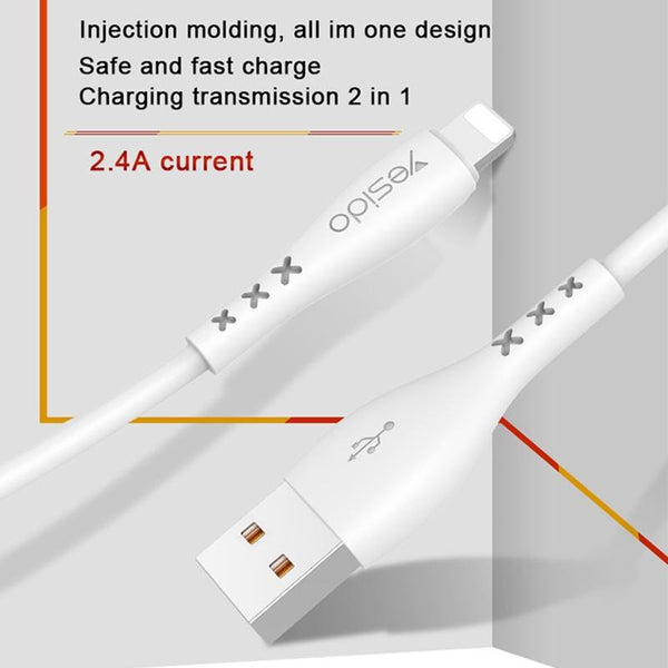 Yesido CA26 2.4A USB to 8 Pin Charging Cable, Length: 1m(Black)