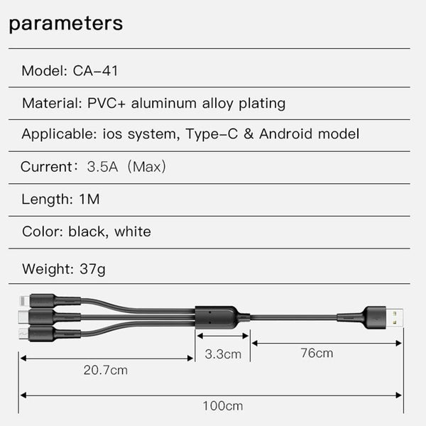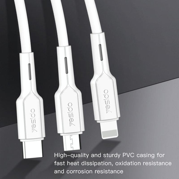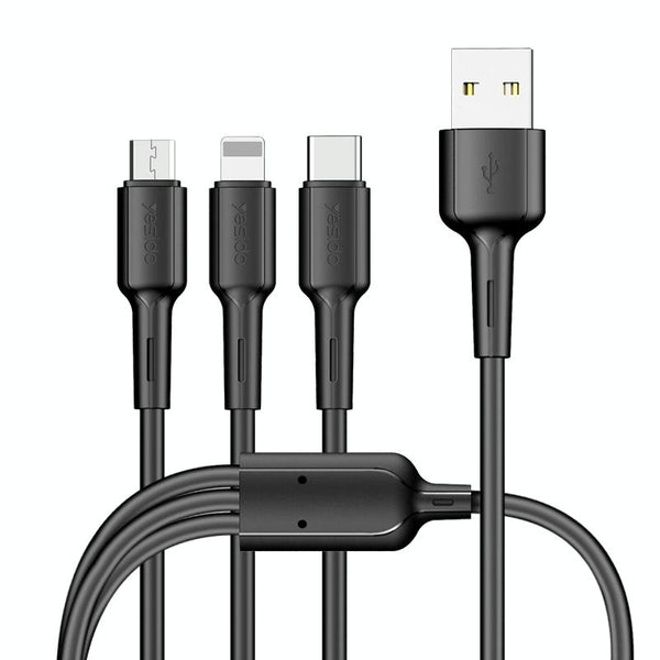 Yesido CA41 3.5A USB to 8 Pin + Micro USB + USB-C / Type-C Charging Cable, Length: 1m(Black)