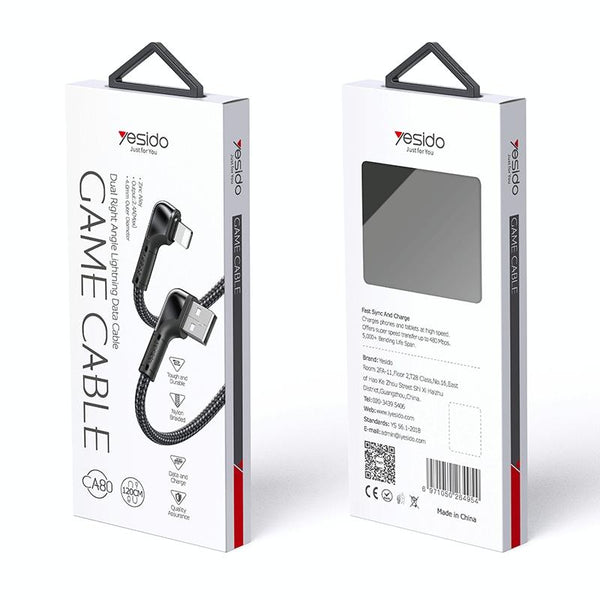 Yesido CA80 2.4A Elbow USB to 8 Pin Charging Cable, Length: 1.2m