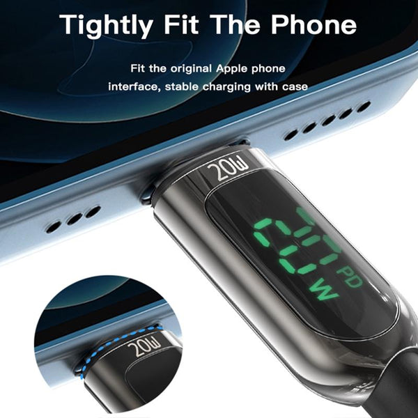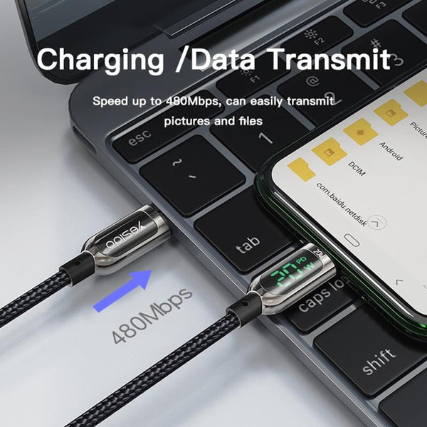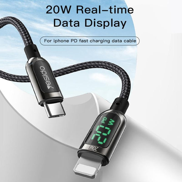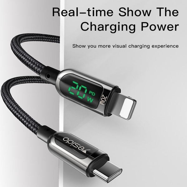 Yesido CA86 20W USB-C / Type-C to 8 Pin Digital Display Fast Charging Cable, Length: 1.2m