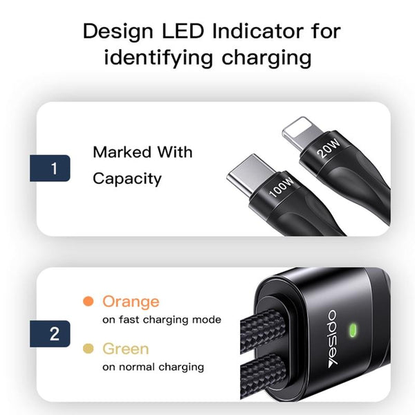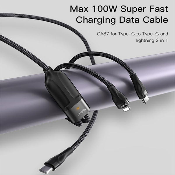 Yesido CA87 2 in 1 USB-C / Type-C to 8 Pin + USB-C / Type-C Fast Charging Cable, Length: 1.2m
