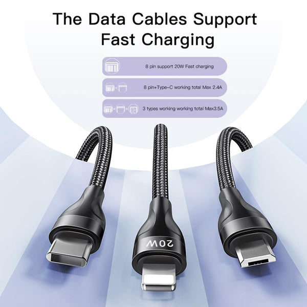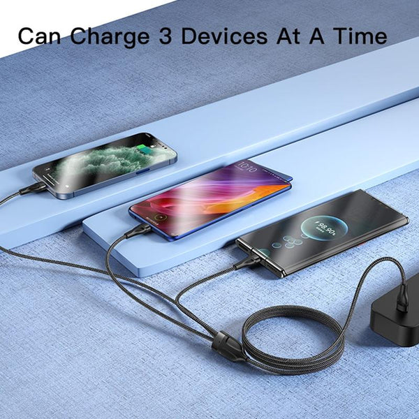 Yesido CA89 3 in 1 USB-C / Type-C to 8 Pin + USB-C / Type-C + Micro USB Fast Charging Cable, Length: 1.2m