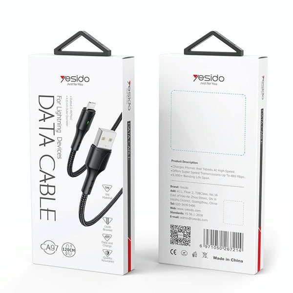 Yesido CA97 2.4A USB to 8 Pin Charging Cable with Indicator Light, Length: 1.2m