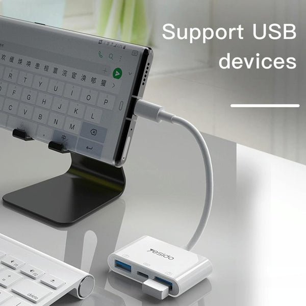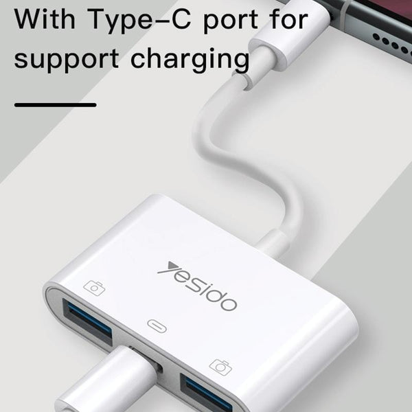 Yesido GS17 USB-C / Type-C to Dual USB + USB-C / Type-C OTG Adapter(White)