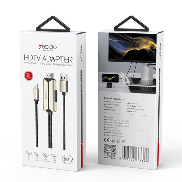 Yesido HM12 2m 8 Pin to HDMI 1080P HDTV Adapter with Charging Cable(Black+Gold)