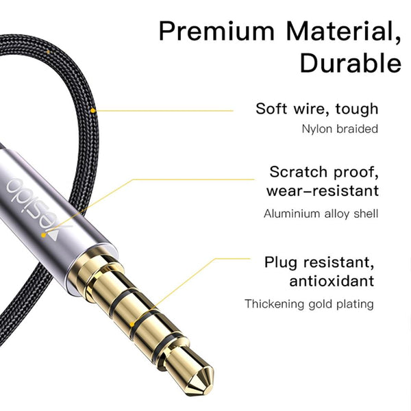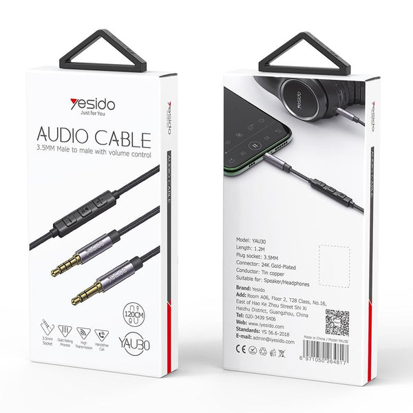 Yesido YAU30 3.5mm Male to 3.5mm Male Audio Cable with Microphone, Length:1.2m(Black)