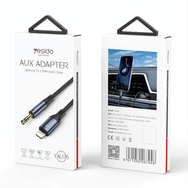 Yesido YAU35 8 Pin to 3.5mm AUX Audio Adapter Cable(Black)