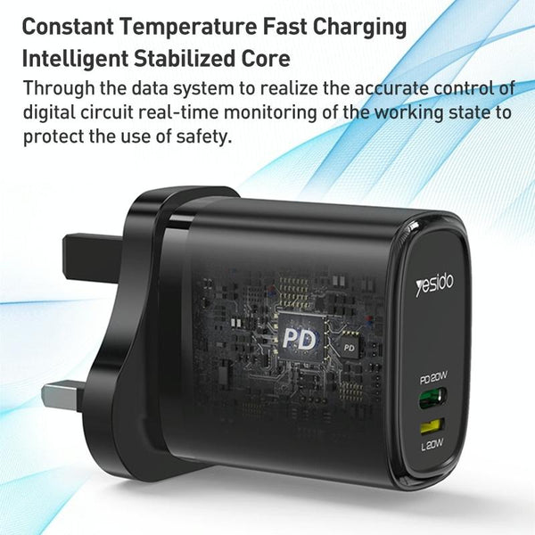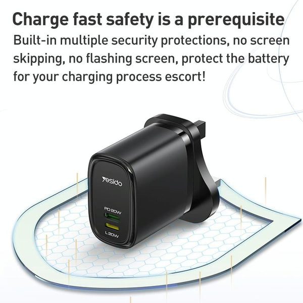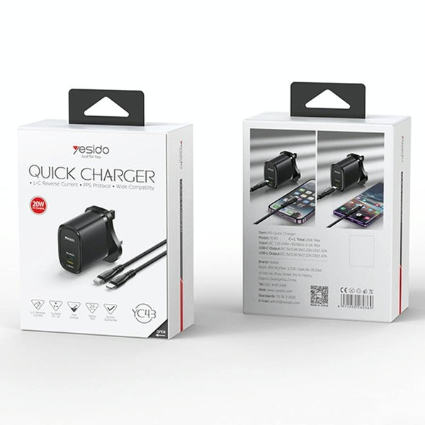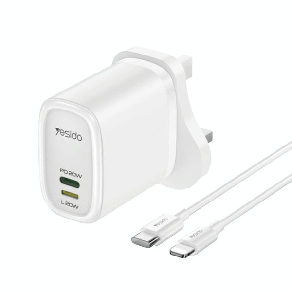 Yesido YC43 PD 20W USB-C / Type-C + 8 Pin Travel Charger with 1m Type-C to 8 Pin Cable, UK Plug(White)