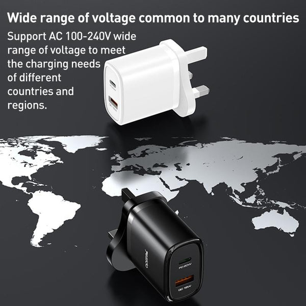 Yesido YC46 PD20W USB-C / Type-C + USB Travel Charger with 1m Type-C to 8 Pin Cable, UK Plug(White)