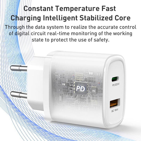 2. PD20WType-C+QC18WUSB interface design supports charging two devices at the same time