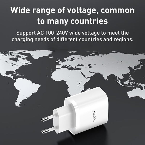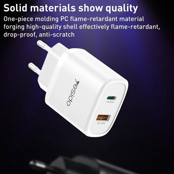 Yesido YC47 USB-C / Type-C + USB Travel Charger with 1m USB-C / Type-C to 8 Pin Cable, EU Plug (White)