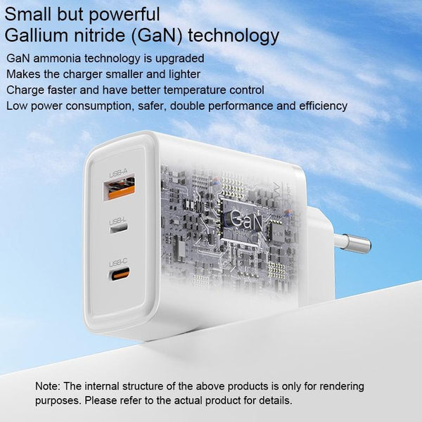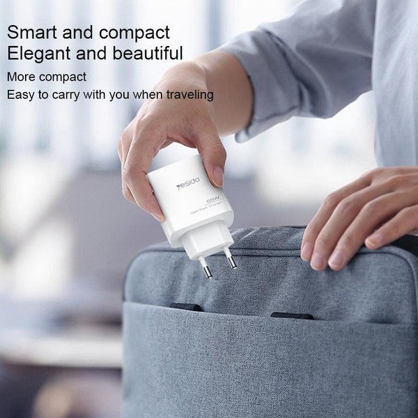 Yesido YC70 65W Type-C, USB, 8 Pin Reverse GaN Fast Charger with Type-C to 8 Pin Cable(EU Plug)