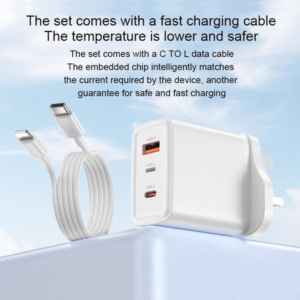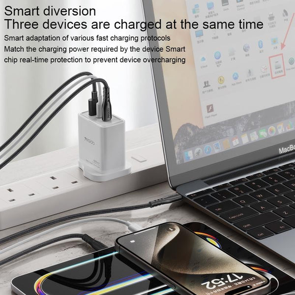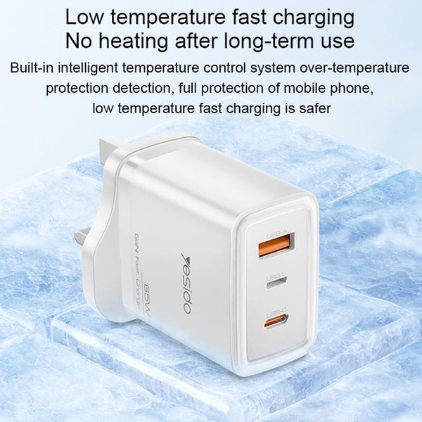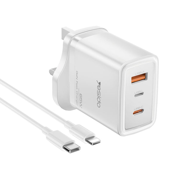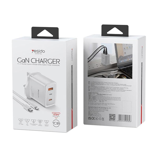 Yesido YC89 65W Type-C, USB, 8 Pin Reverse GaN Fast Charger with Type-C to 8 Pin Cable(UK Plug)