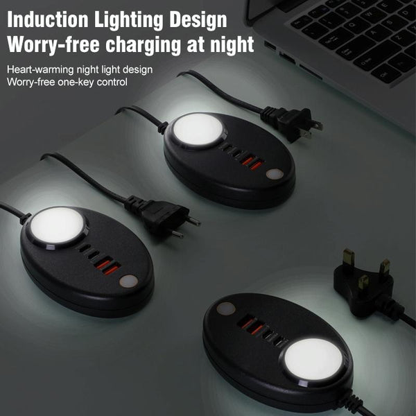 YF-106 USB- C / Type-Cx2+USBx2 Oval PD Socket Phone Charger with Light, Plug Type:US Plug(Black)