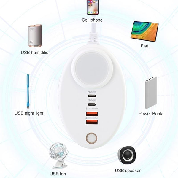 YF-106 USB- C / Type-Cx2+USBx2 Oval PD Socket Phone Charger with Light, Plug Type:US Plug(White)