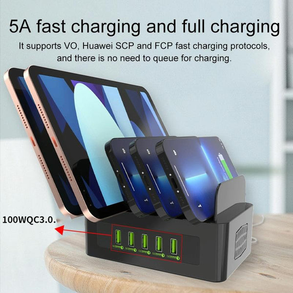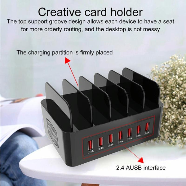 YFY-A52 100W 2.4A 7 x USB Ports Smart Charging Station with Phone & Tablet Stand