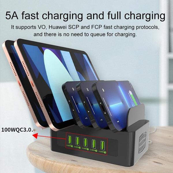 YFY-A53 100W 5 x USB Ports QC3.0 Smart Charging Station with Phone & Tablet Stand
