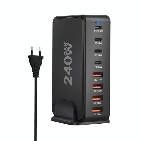 YMS-858 GaN 240W USB x 4, USB-C / Type-C x 4 Fast Charger, Plug Type:EU Plug(Black)