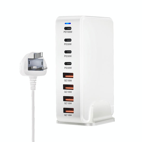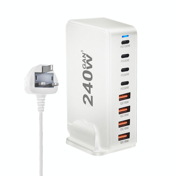 YMS-858 GaN 240W USB x 4, USB-C / Type-C x 4 Fast Charger, Plug Type:UK Plug(White)