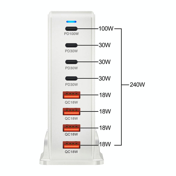 YMS-858 GaN 240W USB x 4, USB-C / Type-C x 4 Fast Charger, Plug Type:US Plug(White)