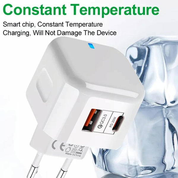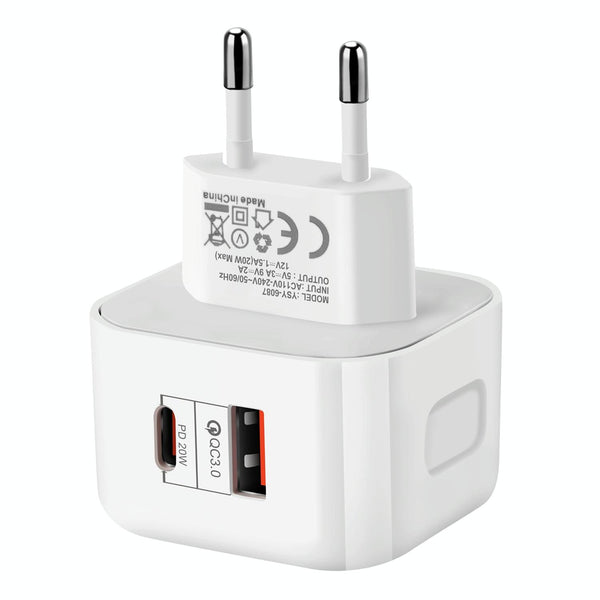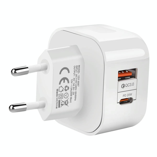YSY-6087 20W PD + QC 3.0 Dual Ports Travel Charger Power Adapter, EU Plug