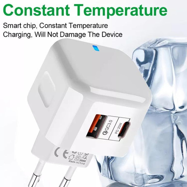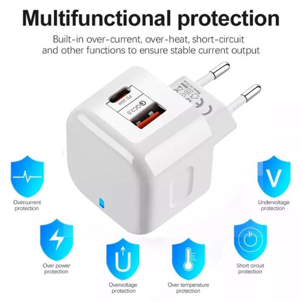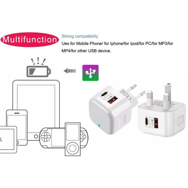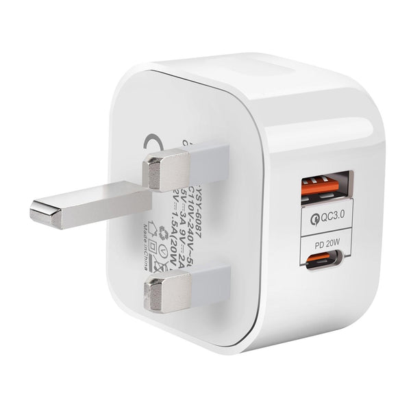 YSY-6087 20W PD + QC 3.0 Dual Ports Travel Charger Power Adapter, UK Plug