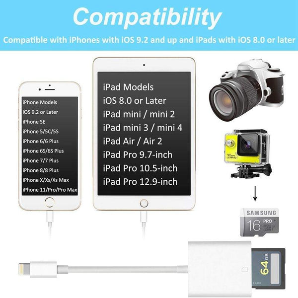 ZS-KL21810 8 Pin to SD Card Camera Card Reader Adapter, Support All iOS System