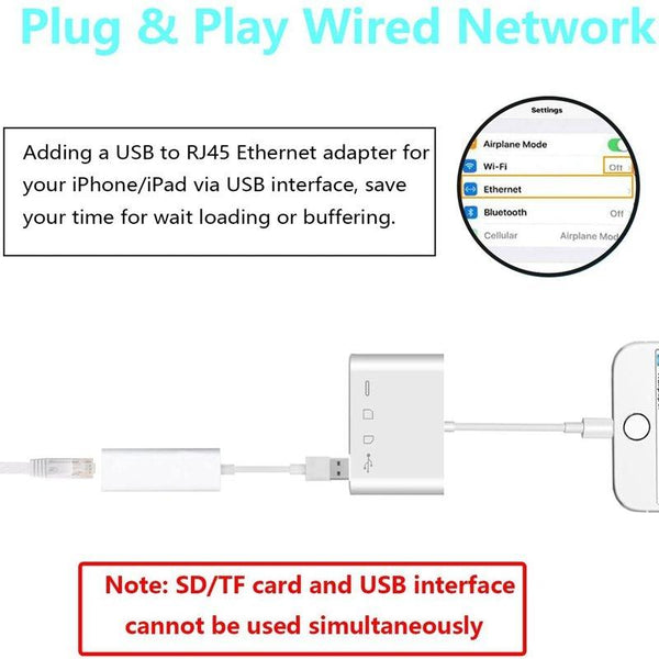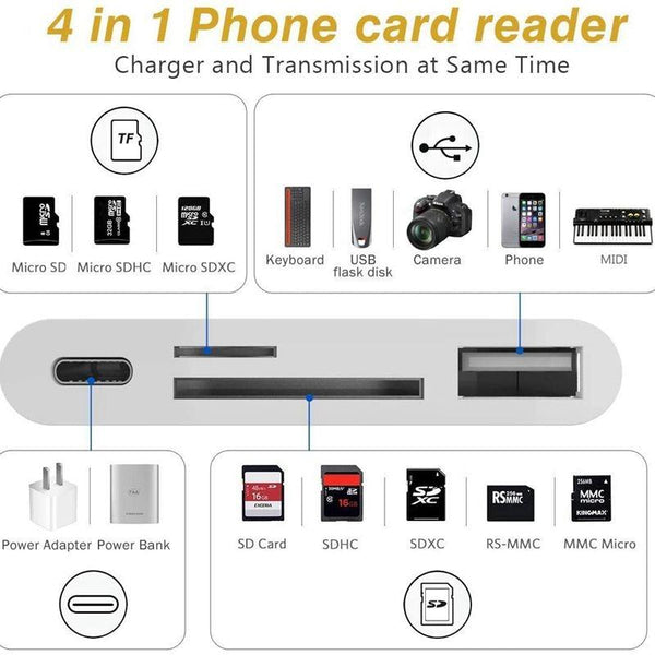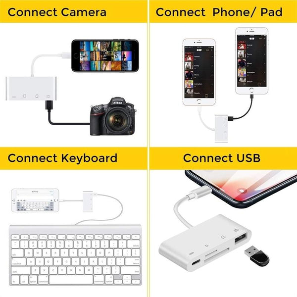 ZS-S1827 4 in 1 SD Card + TF Card + 8 Pin Charge + USB Interface to 8 Pin Interface Camera Reader Adapter, Support All iOS System