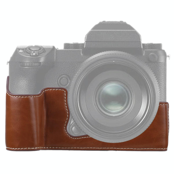 1/4 inch Thread PU Leather Camera Half Case Base for FUJIFILM GFX 50S (Brown)