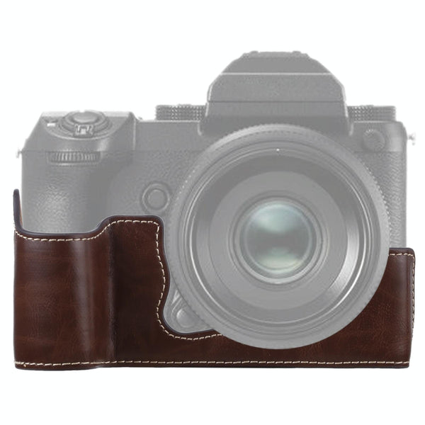 1/4 inch Thread PU Leather Camera Half Case Base for FUJIFILM GFX 50S (Coffee)