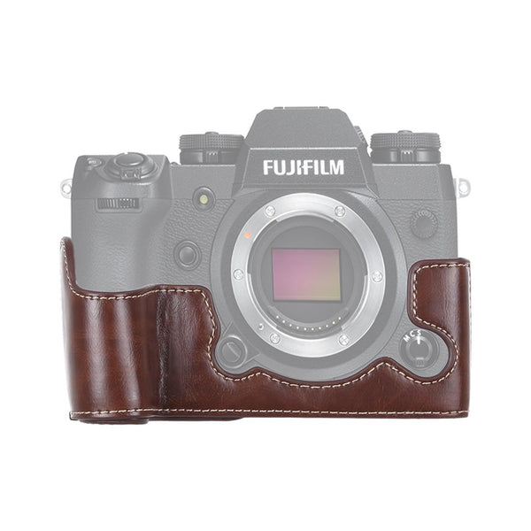 1/4 inch Thread PU Leather Camera Half Case Base for FUJIFILM X-H1 (Coffee)
