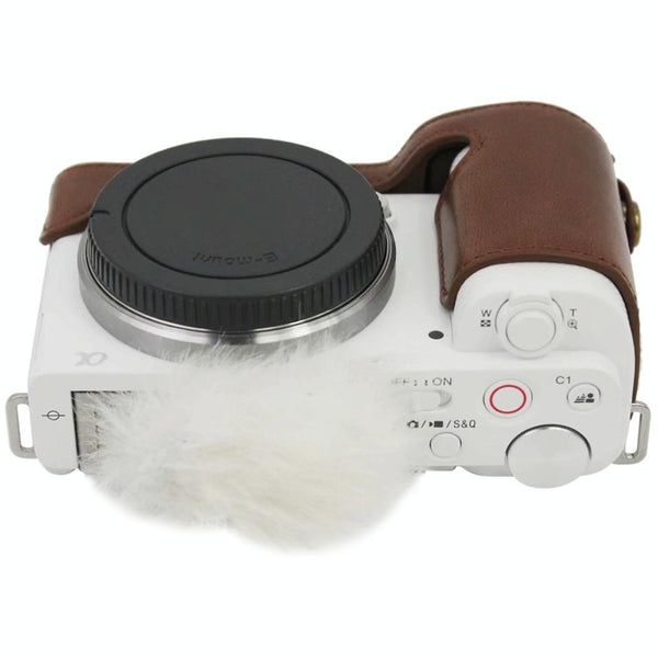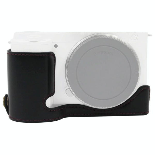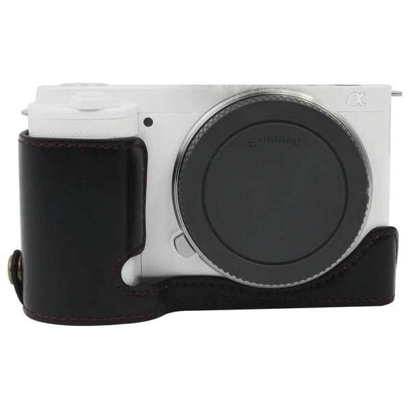 1/4 inch Thread PU Leather Camera Half Case Base for Sony ZV-E10 / ZV-E10L (Black)