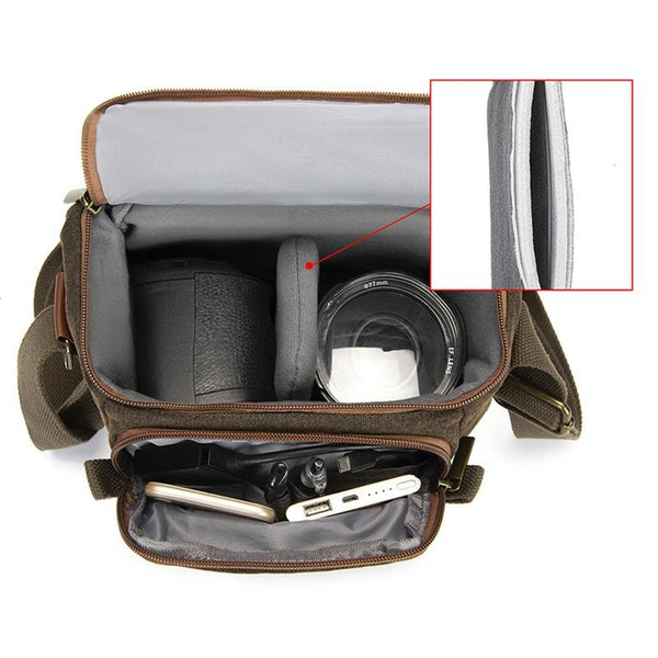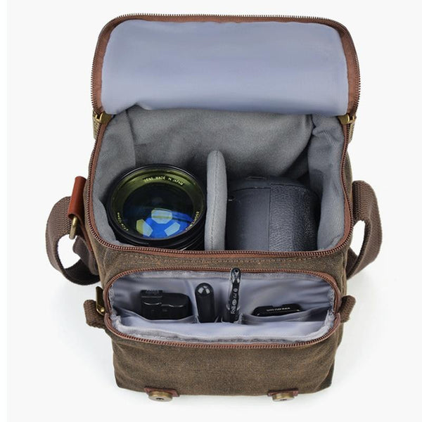 CADEN N1 Large Retro Multifunctional Canvas Waterproof Digital Camera Photography Shoulder Bag(Coffee)