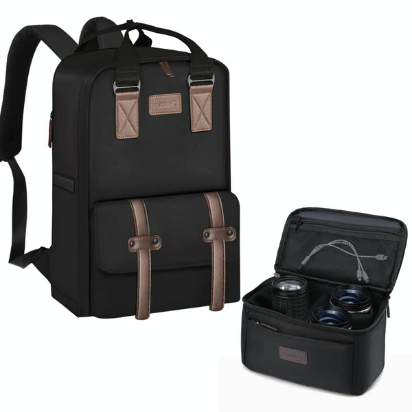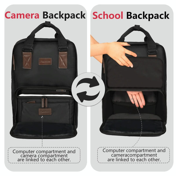 Cwatcun D78 Camera Laptop Backpack Bag With Detachable Insert Camera Case(Black)