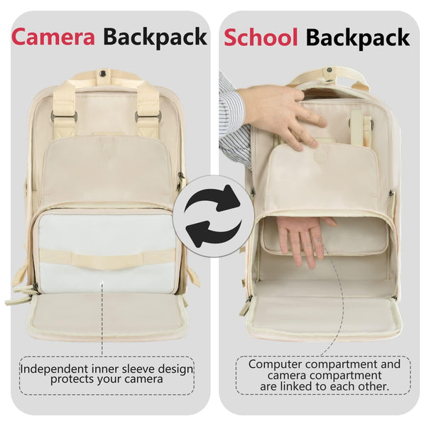 Cwatcun D78 Camera Laptop Backpack Bag With Detachable Insert Camera Case(Creamy White)