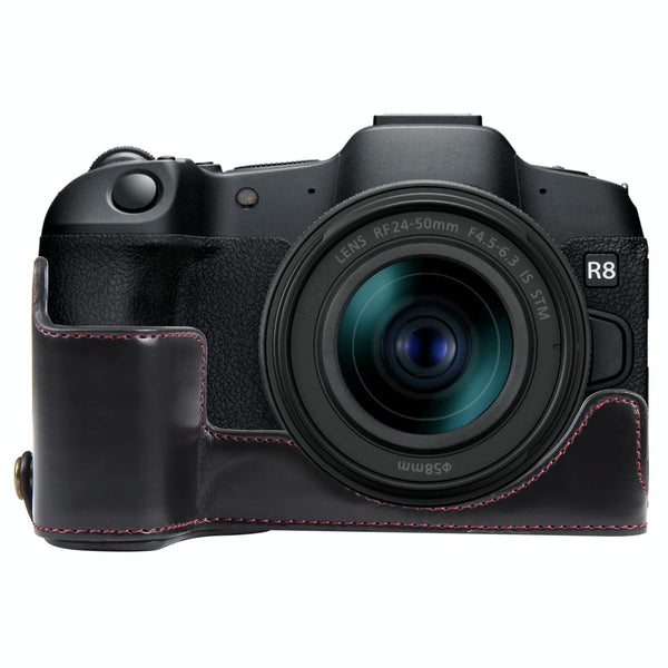 For Canon EOS R8 1/4 inch Thread PU Leather Camera Half Case Base(Black)