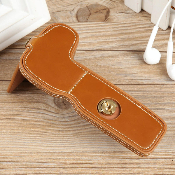 For Canon EOS R8 1/4 inch Thread PU Leather Camera Half Case Base(Brown)