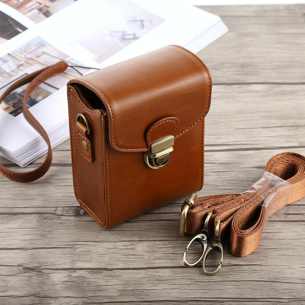 Full Body Camera Buckle Lock PU Leather Case Bag with Hand Strap & Neck Strap for Canon G7X II / G9X Mark II, Sony RX100 / M2(Brown)