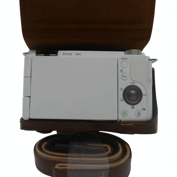 Full Body Camera PU Leather Case Bag for Sony ZV-E10(Coffee)