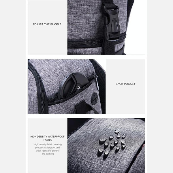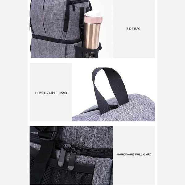 6. Main body separated into two bags: Main bag for clothes, foods, small dinnerware, mobile phones etc.; Camera bags for camera, camera lens and other camera accessories.