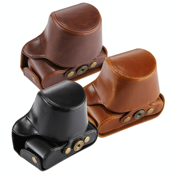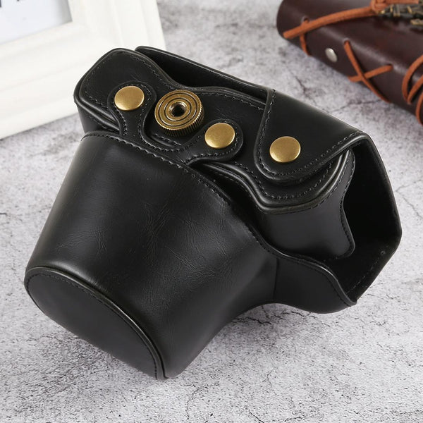 Oil Skin PU Leather Camera Full Body Case Bag with Strap for Olympus EM10 III(Black)