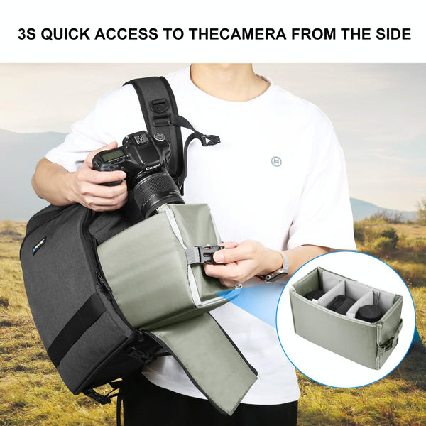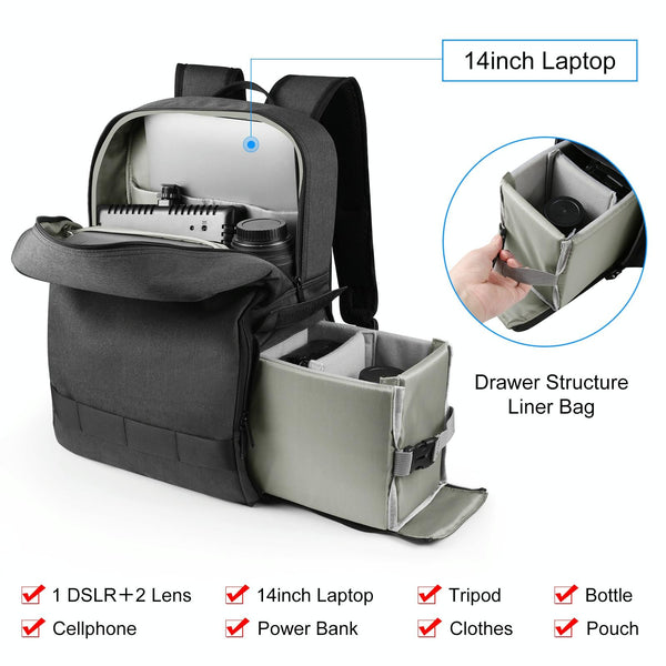 3. Can load digital SLR camera body, as well as lens and 1-2 additional lens and accessories.