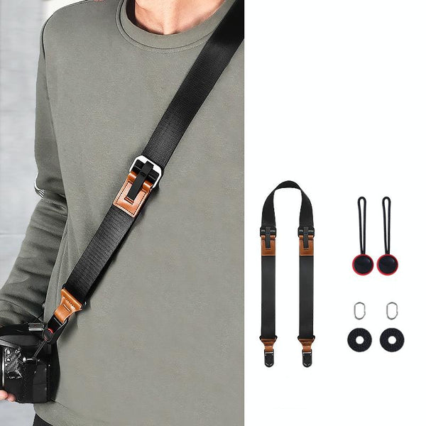 Quick Release Mirrorless Camera Crossbody Strap SLR Camera Decompression Halter Strap(Black+Brown)