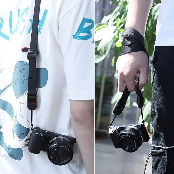 1. Intelligent Design: The camera shoulder strap has been carefully designed with a safety buckle type connection, and the installation is very simple, so you can quickly connect or detach your camera, free your hands and have a pleasant photo moment.